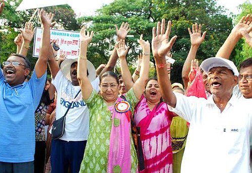 Laughter Yoga teacher Francine Shore, USA, recently staged a flash mob scene in Central Park with seniors, who created a laugh riot, with the hope that passersby will join them in their hilarity. There were dozens of seniors ranging from 55- 80 ye..