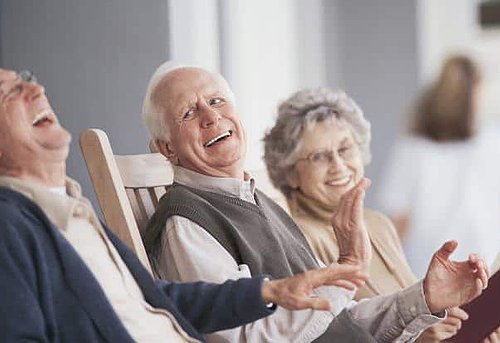 Seniors participating in a laughter class, conducted by Cheryl Russell, in Laguna Woods, Orange County, California, laugh like children, while doing Laughter Yoga. Russell uses laughter as a form of exercise to benefit health and quality of life for..