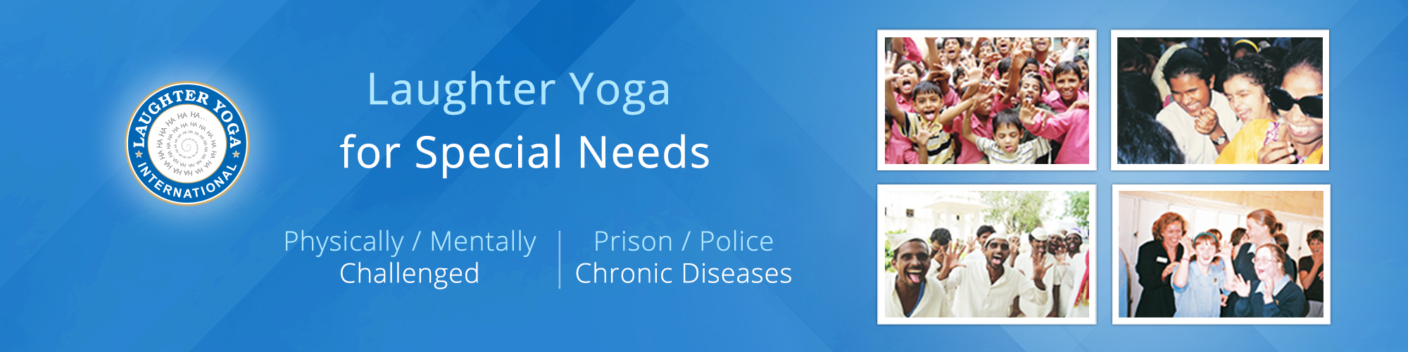 Visually impaired people are also prone to depression and frustration. Laughter Yoga exercises can help them overcome their negative mental state making them more positive helping them deal with their issues. Blind people have an extraordinary talent for music and combining this ability with laughter makes it an enjoyable experience. We have introduced Laughter Yoga in many Schools for the blind including India, Japan and Taiwan with very positive results.